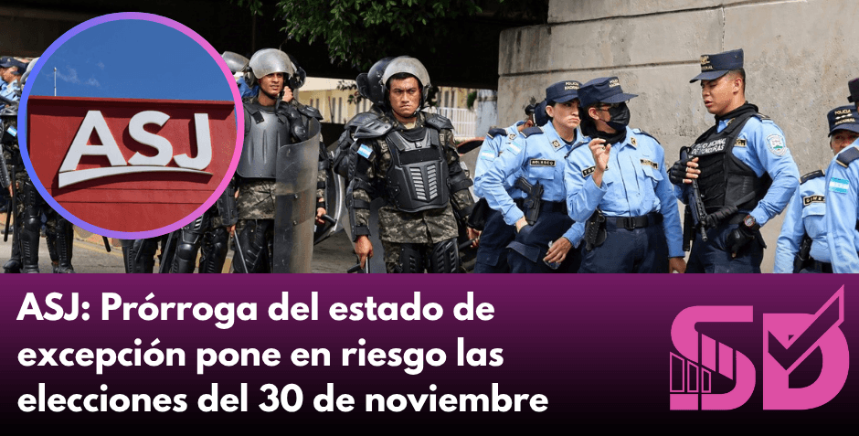 La Asociación para una Sociedad más Justa (ASJ), capítulo hondureño de Transparencia Internacional, advirtió que la nueva prórroga de 45 días al estado de excepción vulnera derechos fundamentales y amenaza la integridad del proceso electoral previsto para el 30 de noviembre.