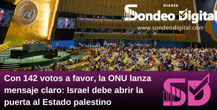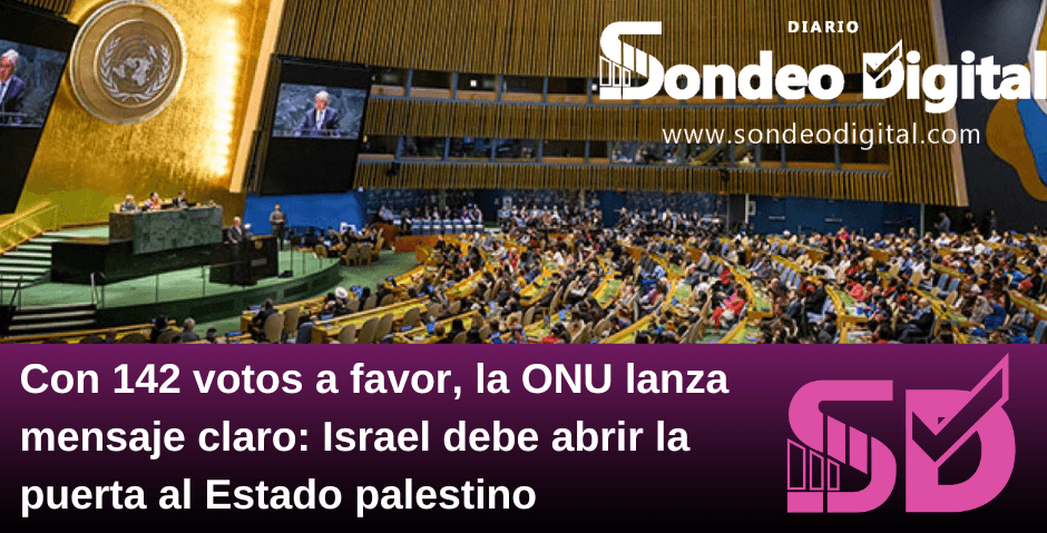 NACIONES UNIDAS — La Asamblea General de la ONU votó abrumadoramente a favor de una resolución que exhorta a Israel a comprometerse con la creación de un Estado palestino, en el marco de una solución de dos Estados. La votación fue de 142 a favor, 10 en contra y 12 abstenciones, reflejando un consenso internacional que contrasta con la postura del primer ministro israelí, Benjamin Netanyahu, quien horas antes declaró: