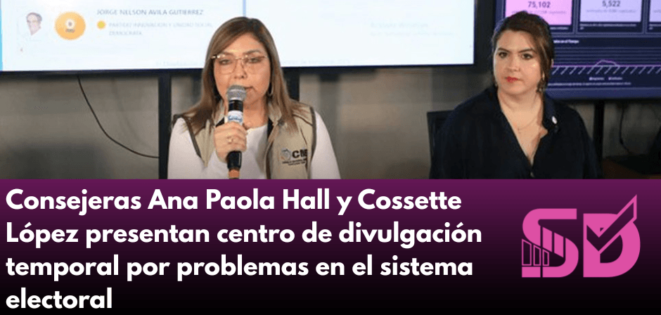 Consejeras Ana Paola Hall y Cossette López presentan centro de divulgación temporal por problemas en el sistema electoral