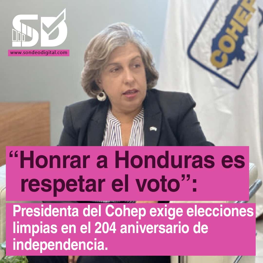 “Honrar a Honduras es respetar el voto”: Presidenta del COHEP exige elecciones limpias en el 204 aniversario de independencia