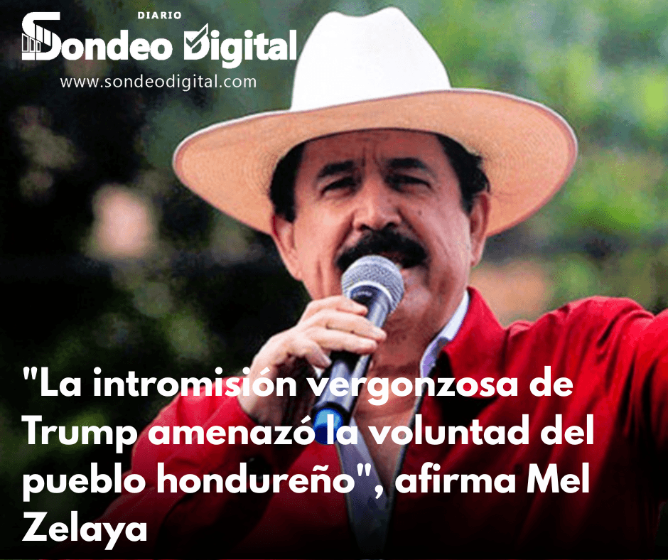 El expresidente de Honduras y coordinador general del Partido Libertad y Refundación (Libre), Manuel Zelaya, reaccionó este martes tras la declaratoria de resultados de las elecciones generales del pasado 30 de noviembre, señalando que la “intromisión vergonzosa” del presidente de Estados Unidos, Donald Trump, “amenazó la voluntad del pueblo hondureño” en las urnas.